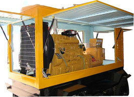 陵城柴油发电机组/移动柴油发电机组设计独具创新,机动性高、重心低、制动安全、制造精良、外形美观。 陵城拖车车架采用槽梁焊接成框架结构,节点选择合理、强度高、刚性好;同时装有钢板弹簧悬架结构;拖车采用高度可调节插销式牵引架,适用于各种高度牵引车;采用圆形钢管焊接直通式车轴,结构紧凑,安全可靠;车架四角设有机械式支撑装置,配备惯性行车制动、驻车制动和脱离应急制动,确保机组在各种状况下的安全;车架前端设有支撑轮,具备承受机组垂直载荷的功能的同时还具备导向功能;整车配备转向和刹车指示灯,同时装有尾灯标准插头